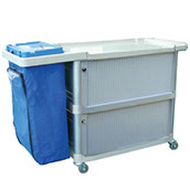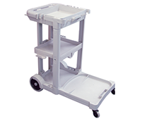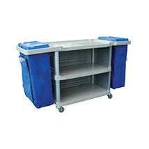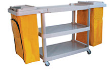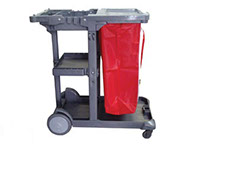 O Carro Multifuncional transporta materiais para maior eficiência na limpeza e na remoção de lixo.