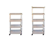 Carro extra em polipropileno com colunas em alumínio anodizado. Suporta até 45kg em cada compartimento.